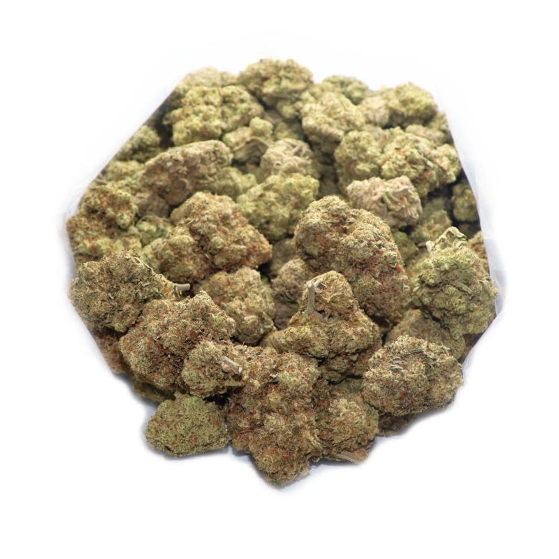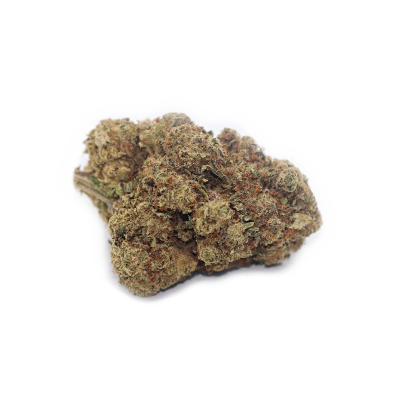 Donkey Butter is a rare indica dominant hybrid strain (70% indica/30% sativa) created through crossing the classic Grease Monkey X Triple OG strains. The name may be weird, but this bud packs a super savory pungent flavor and lifted effects that are perfect for any indica lover. Donkey Butter has a spicy skunky flavor with hints of earthy pine and herbs as you exhale. The aroma is very heavy and pungent with a spicy diesel effect that’s accented by rich skunk and rotting pine. The Donkey Butter high has a euphoric overall feel that’s perfect for evenings when you want to kick back and relax. You’ll feel a relaxing lift at the onset of the high that fills you with a light tingly energy and a sense of euphoria. Soon, this effect will fade into a deep peaceful body high that leaves you sleepy, couch-locked, and slightly aroused. Thanks to these effects and its high 26-28% average THC level, Donkey Butter is often chosen to treat conditions such as chronic stress, insomnia, chronic pain, migraines or headaches, and nausea. This bud has long tapered olive green nugs with thin amber hairs and a coating of super thick frosty golden crystal trichomes.