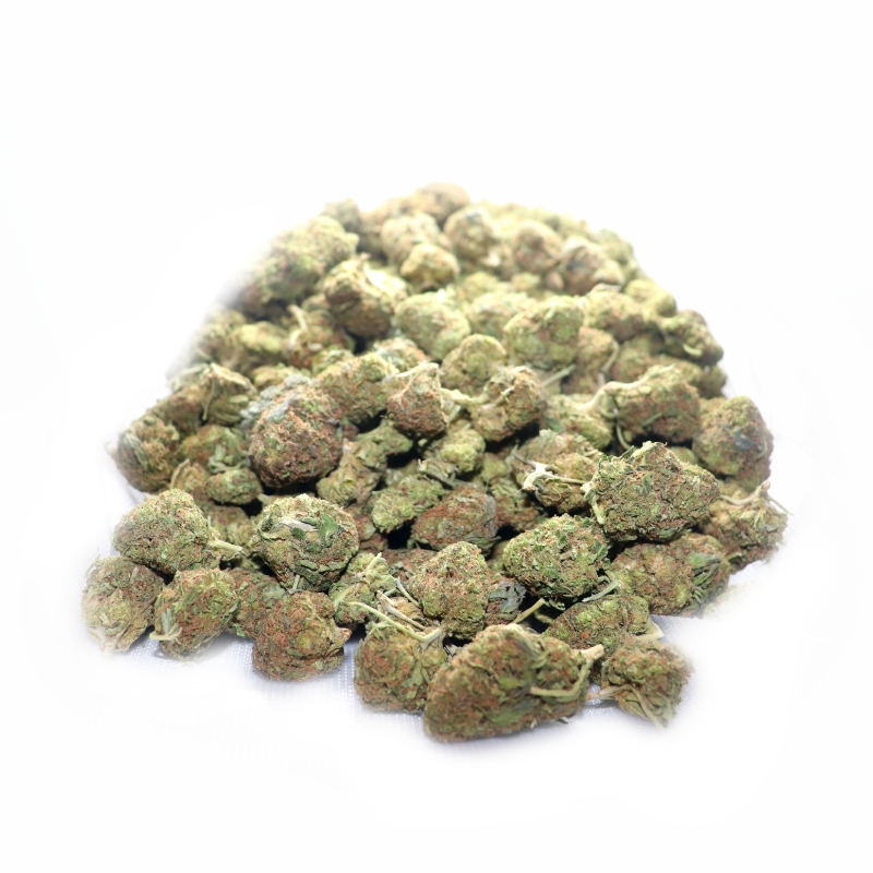Sugar Kush is a pure indica hybrid strain (100% indica) created through crossing the iconic Kandy Kush X Hash Plant strains. If you’re after a super sweet bud that will leave you begging for more, Sugar Kush is the perfect choice for you. Much like its name suggests, Sugar Kush has a super sweet and sugary fruity candy flavor with a touch of woodiness upon exhale. The aroma is just as mouthwatering, with a sweet sugary candy overtone accented by fresh fruits and woody pine. The Sugar Kush isn’t quite as eye-opening as its taste, with soothing and sleepy effects that are best-suited for a lazy night spent in rather than one where you need to get anything done at all. You’ll feel a boost of euphoria hit you a few minutes after your final exhale, filling your brain with a happiness that pushes out any negative or racing thoughts, replacing them with a soothing sense of calm and ease. A relaxing body high accompanies this heady lift, helping you to kick back and stretch out with a slightly arousing tingle. This combination can turn sedative, ending in a long and peaceful sleep. With these effects and its high 18-20% average THC level, Sugar Kush is often chosen to treat chronic stress or anxiety, depression, insomnia and chronic pain. This bud has small rounded dark olive green nugs with purple undertones, thin orange hairs and a coating of frosty, dark purple-tinted white crystal trichomes.